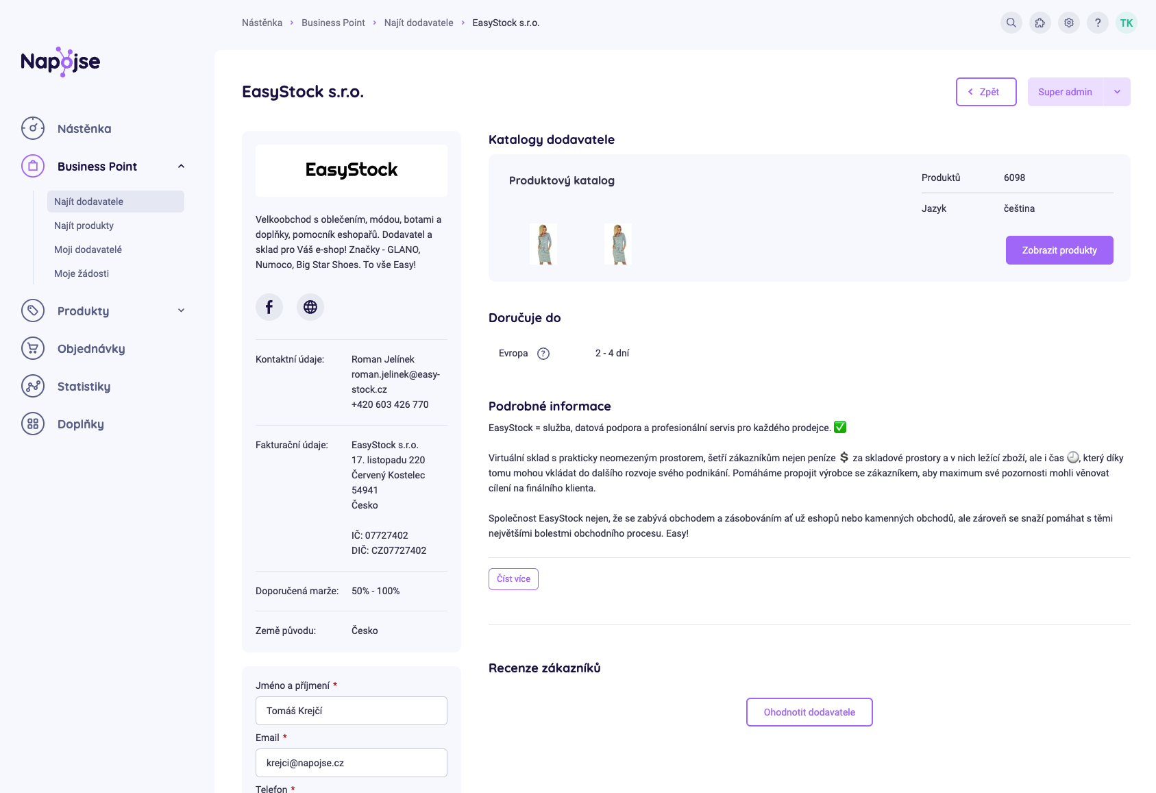 Jak doplňěk Napojse pro dodavatele vypadá?